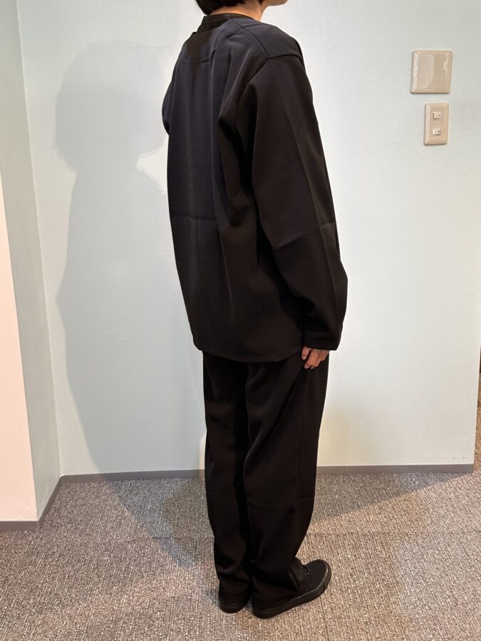 細番手の糸を使用していて、表面に美しさがあり、しっとりとした肉感と適度なハリが、着用した時のスタイリングに影響を与えています。自宅での手洗いも可能です。