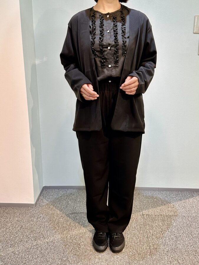 価格:16,500円税込 色:白と黒 サイズ:着丈62.5cm 肩幅59.5cm 袖丈53.5cm 袖口9.5cm