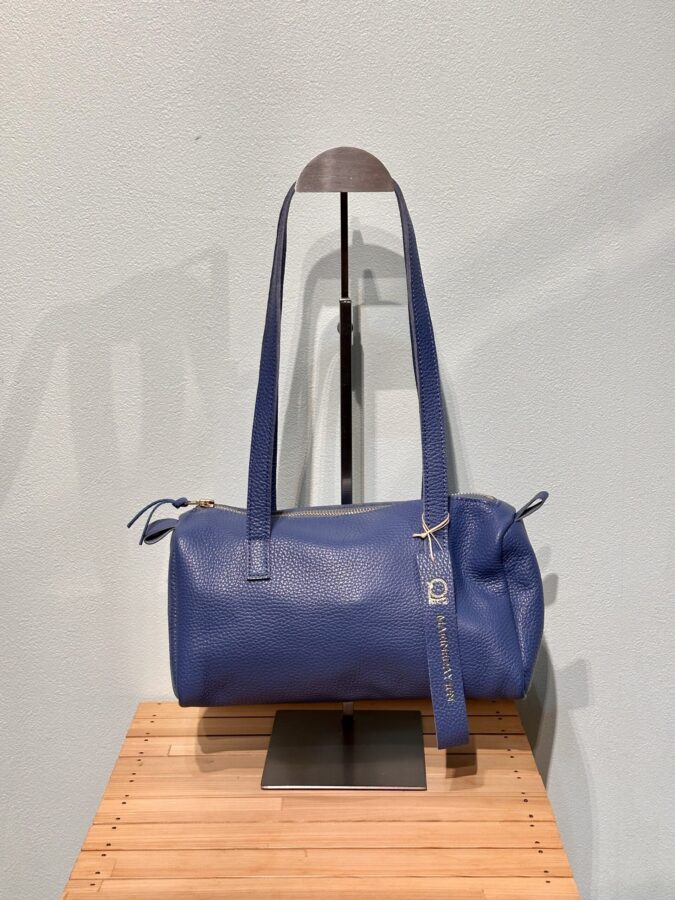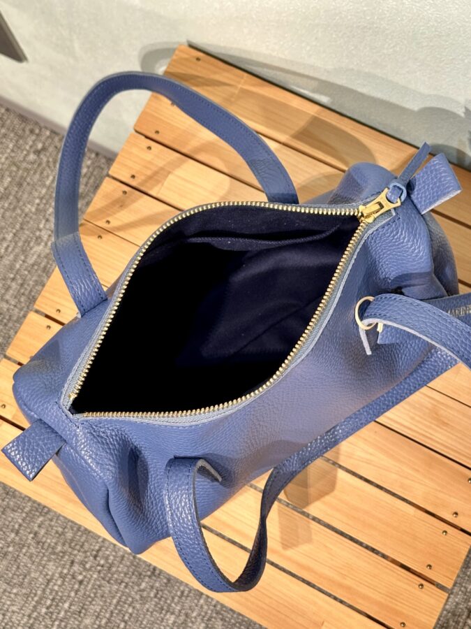 入ってきては人気ですぐ出て行きます。マリンデイさんのボストンバッグ、綺麗とカジュアル両立です。横浜のブルーが新色で入荷。肩掛けのバッグです。