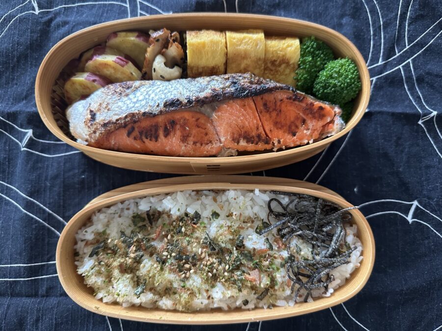 ロシア産のシャケは正直美味しいね。日本には規制なく入っているんだと、、、スイートなポテト、いつもの甘い卵焼き、やっぱり弁当は美味しいよねー