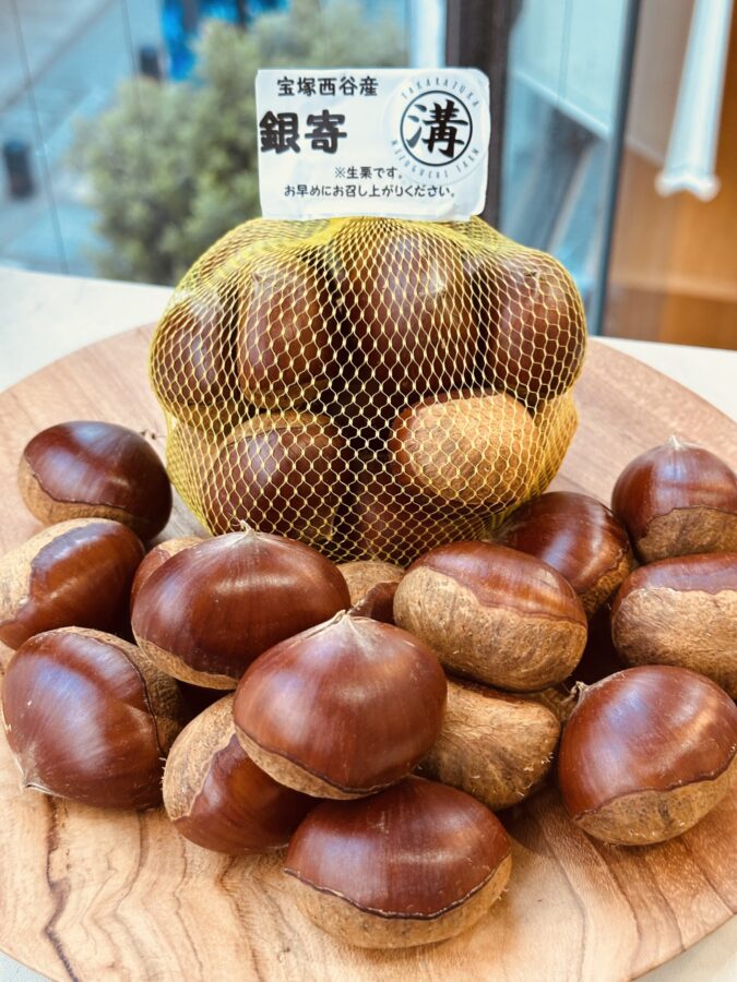 私の故郷の宝塚の名産品、「栗」です。農家さんにはおとといの木から、収穫をすぐ詰めていただき、クール便で昨日の夕方届きました。便利な時代です。