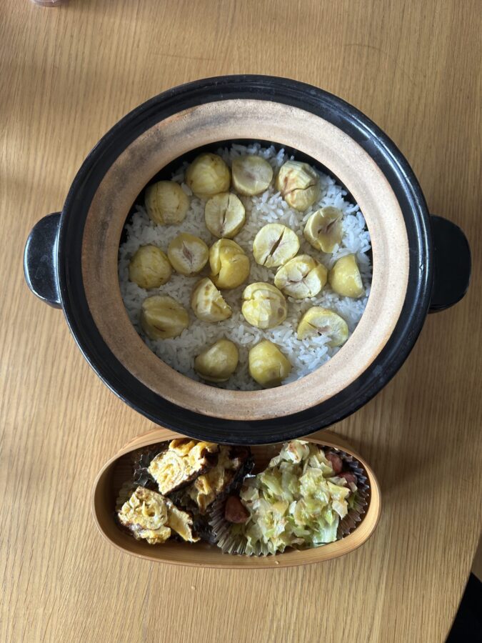 2025年10月24日 おいしい 丹波黒豆と丹波栗 宝塚産の黒大豆の枝前が到来 溝口さま ありがとうございます。 昨日のご飯、栗ご飯だけでもよかったぐらいですわ 今日の、黒豆入りの栗ご飯、全部入り。渋皮煮がやはりうまいです。見てくれ悪いです、30分で作るんで、バタバタで毎朝。味はうまい