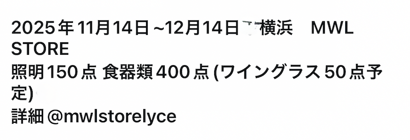 ご予約等の詳細はMWL STOREのインスタグラムにて11月上旬に発表いたします。