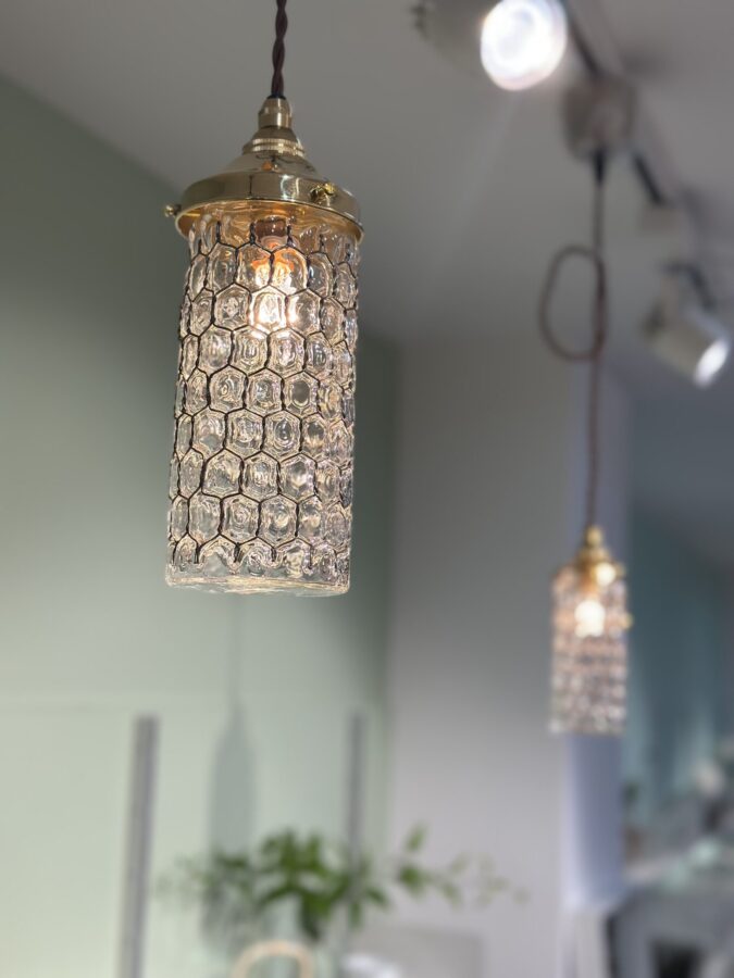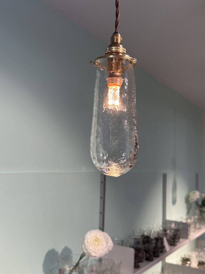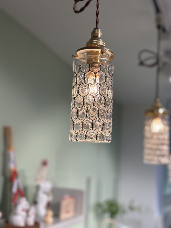 初日と2日目で売れてしまっていた、安土さんと京都の手仕事コラボの金網のランプ、大1点と小2点が再入荷しました。新作のランプも2点入荷、特徴的で、吹きガラスらしさが出た逸品の新作です。