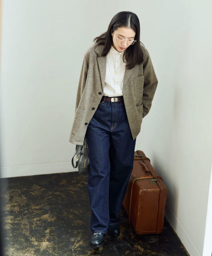 シングルボタンのシンプルなデザイン、定番色のベージュが今また新鮮に映ります。