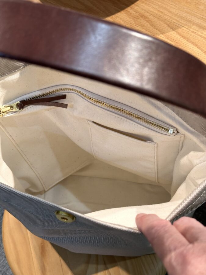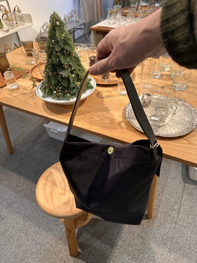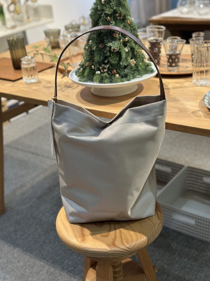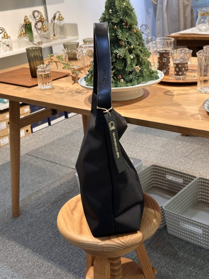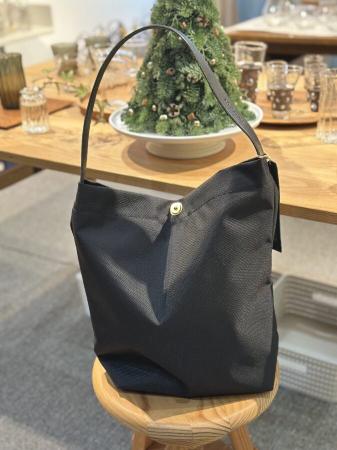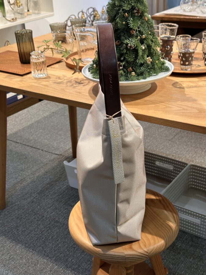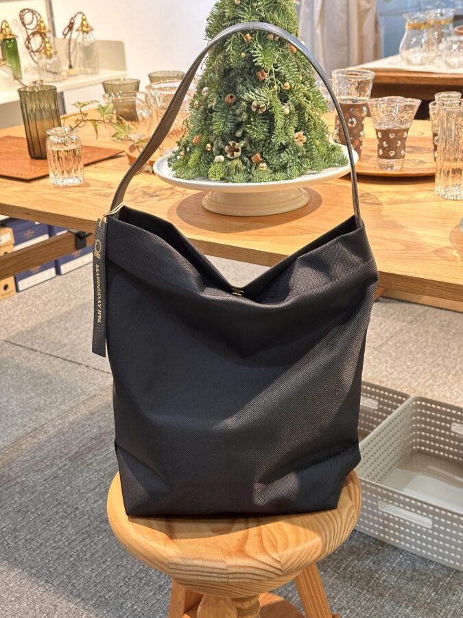 神戸のマリンデイ 肩掛け ボデイには強く撥水性の高い66ナイロン ハンドルには栃木レザーを使用する。