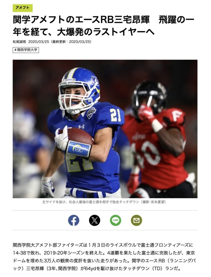 僕の世代の関西ではアメフットというよりもアメリカンって言ってたなぁ、メリカンとも、とにかく関西の大学シーンでは特別なスポーツ、東京の人たちにはわからんやろうと思うその感じは。僕の頃は、武田健学長の関学が特別で、京大の水野監督の時代の強い時代これも特別だった、そして圧倒的に強い立命館の時代へと続く、僕の関大は関関戦でぶつかるから関大側から見れば特別な相手であった。それぞれの時代に名門校がいい戦いをしてきた関西のアメリカンフットボール、東京と違って、地元の子の確率が高くて、当時は特にね、関学関大立命がそうで、京大だけが、難しすぎるので入るのが全国からの子が選手にいたという、水野さんが特殊な背景を作ったという時代。なぜ、あれだけ京大が強かったのかは謎であります。だって関関も立ちゃんも下から、付属校から強いそれぞれの地元の子たちのスポーツだったから、今もですけどね、なのに京大は大学から全国から来て始めさせてあれだけの強さになっていたのだから、、、入試で勉強しないと入れませんからね。関西スポーツの伝説ですね。同志社の平尾さんと並ぶ、これも京都やな。同志社はラグビーですわ圧倒してたな。学生の街京都。学生時代やね。