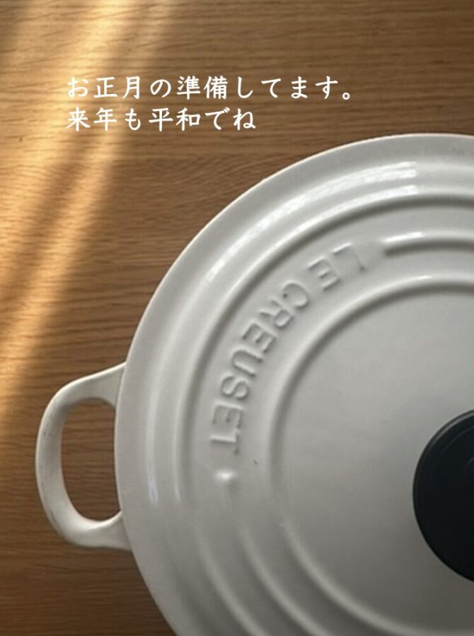 鍋としてはほんと重たすぎるんだけど、美味く炊けるんだよね。黒豆も違う色の鍋で、ストウヴの鍋も参戦中。こうなるとお正月。来年も平和に。