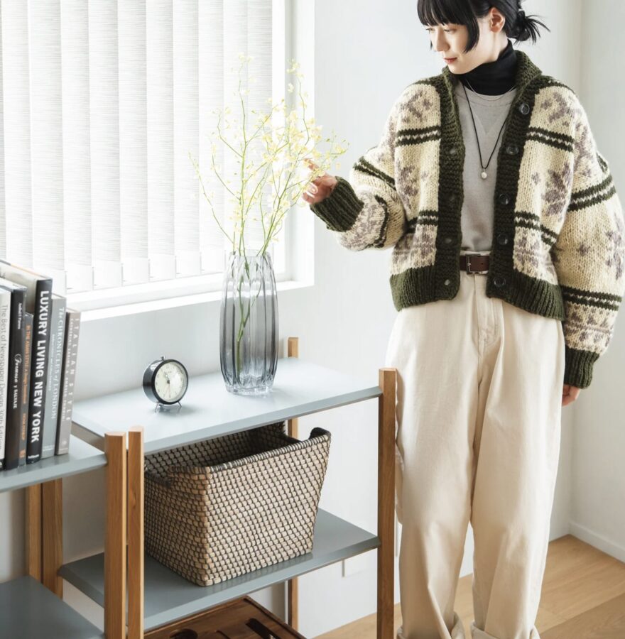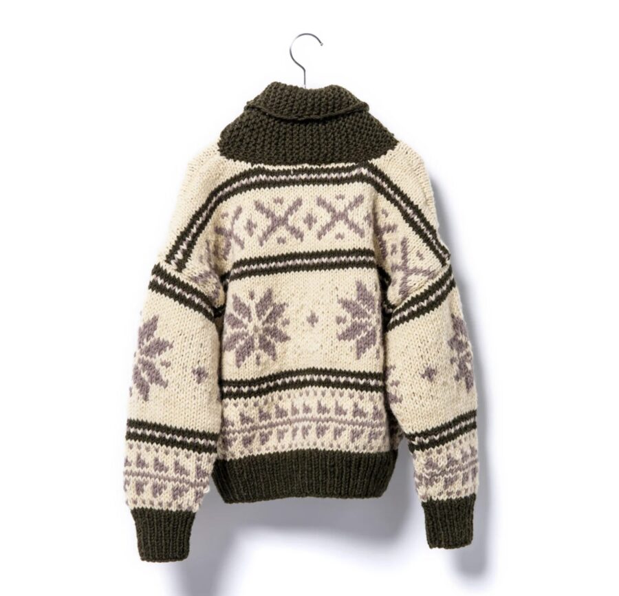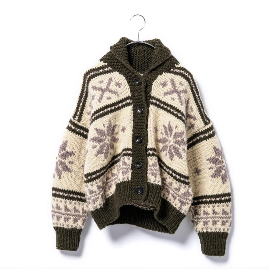 ●コンパクトなサイズ感で、エバーグリーンに着こなせる永久定番品です。年代も年齢も問わず着こなせる、ハンドメイドの一品 「カナダに暮らすカウチン族が狩猟の際に着用していたと言われるカウチンセーター。ハンドメイドなのにこのお値段!? と驚いて、早速色別注をお願いしました。カウチンセーターならではの編み柄が目を引くデザインが、スタイリングに映えますよ。こだわったのはカラーリング。ブラウンやグレーの定番もいいけれど、今回はあえて落ち着いた深みのあるカーキ色に。落ち着いているけれどこなれた雰囲気の出る、ヴィンテージ品のような上品さをまといます。羽織るだけでかなり暖かいので、秋冬のアウターとしてもおすすめですよ。」