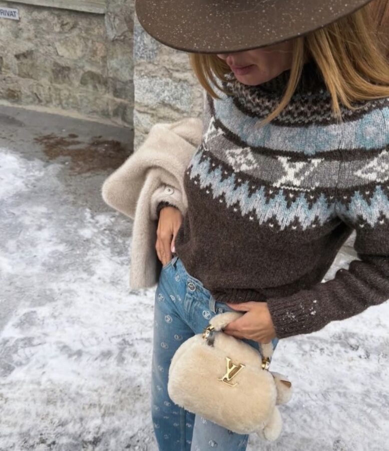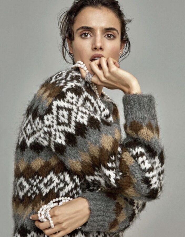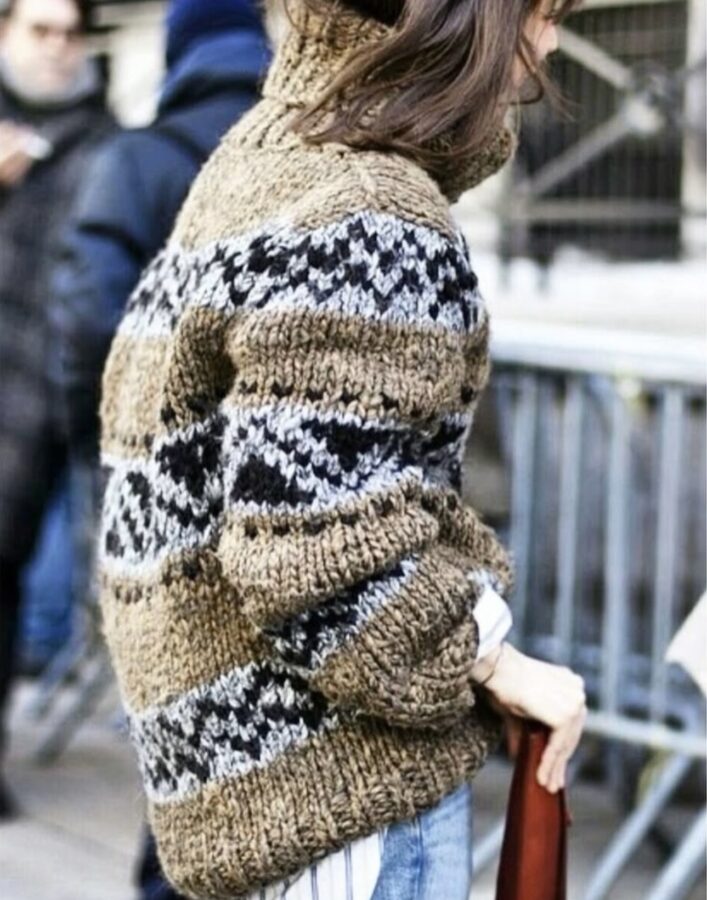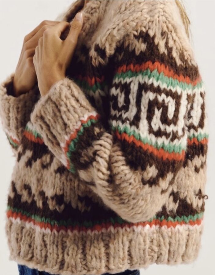 手編みカウチンとムフロン羊毛のベストがベストな組み合わせ。