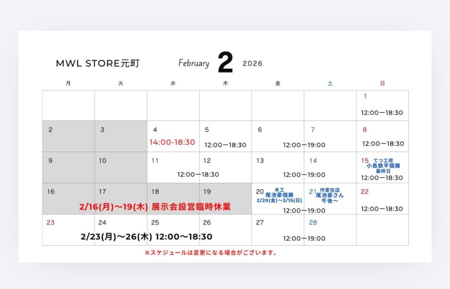 2026年2月3日 お知らせ 明日水曜日の営業時間変更のお知らせ 明日2月4日(水)の営業時間を、午前中に展示会に立ち寄る関係で1 営業時間を14時より18時半までに変更させていただきます。 よろしくお願いいたします。