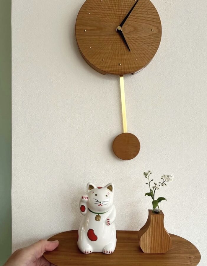 デザイン優れた木工の壁掛け彫り時計の下に鎮座してはるのは、徳力さんとこの「福ねこ」この子は左京区聖護院で生まれたはる。描きては清水の人。徳力さんは今も毎日、伊勢の赤福というあんこ餅に入る、版画絵付きの栞の毎日を作った、徳力富吉郎のお家。注意して見て、栞には「冨」というハンコと共に毎日違うありがたい言葉が載ってますわ。僕の宝塚小学校の修学旅行はお伊勢、夫婦岩に二見ケ浦、ミキモト真珠島、廻りました記憶。お伊勢は僕らにとって特別な地でございます。だから伊勢茶にこだわっています。奈良もそうです、東大寺ね。