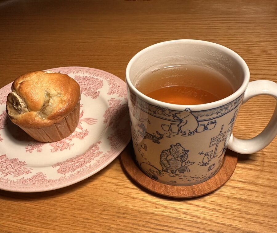 マグカップはロンドンから南へ2時間ほどのところにある「100エーカーの森」で買った。クリストファー・ロビンの森。作っているのはスポード、英国製。お皿はバーレイというブランド。そういやぁポアロの1シーンで家の食器が全部バーレイという貴族のシーンがありましたね。これはF&Mで買った、英国製。皇太子時代のチャールズがしきりに推し活していたバーレイ、お若い時からライフスタイルのセンスがいい今の国王チャールズ。大事なんですよ、若い時の生活が、若いって20代です。いいものを見続けること、知っている人に生きた話を聞きに行くってことですね。