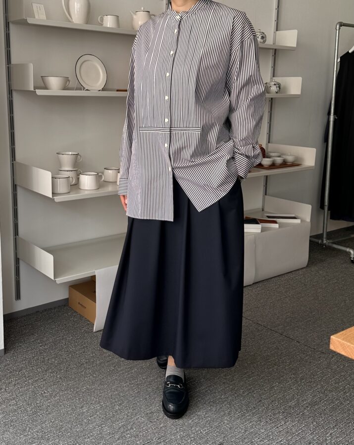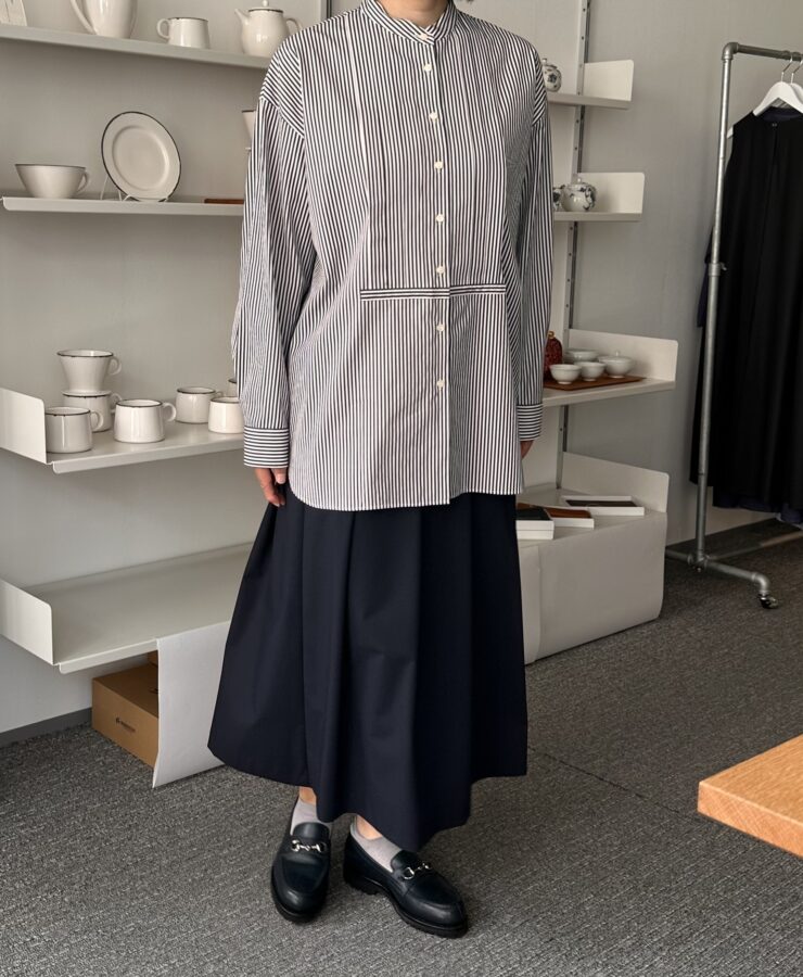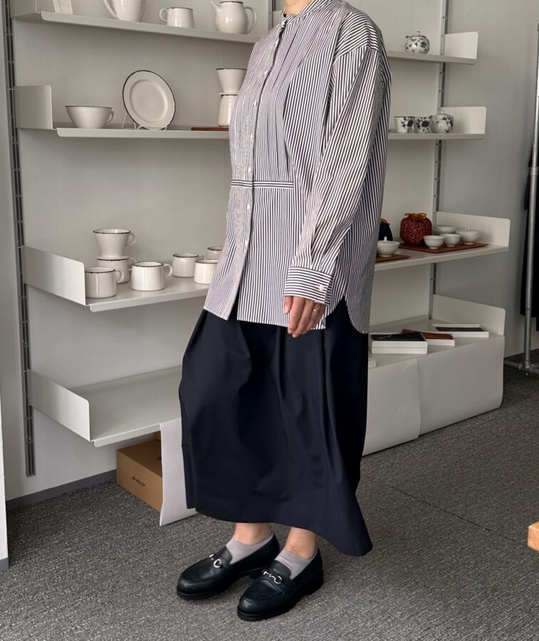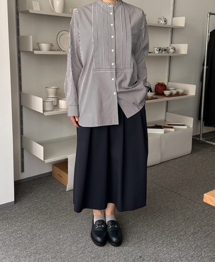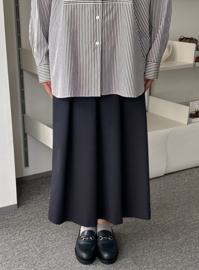 優れています。長さといいフレア・ドレープ感といい、ネイビーの色目も。このすうかーとはあるようでなかなかありません、シューズ、スカート、シャツで初めて完成するスタイルがあります。どれもたくさんのこだわりを持って生産されています。