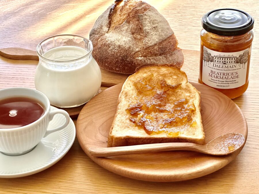 ダルメインのマーマレードは美味すぎる。柚子の入った、世界マーーマレード大会での日本のマーマレードからの影響で作られているベアトリス、Japanの文字が入っている。